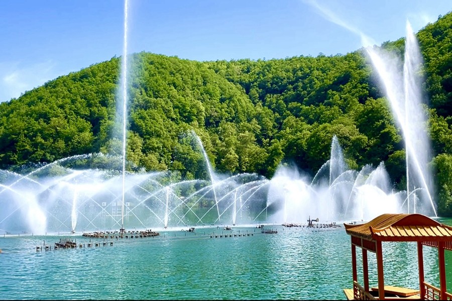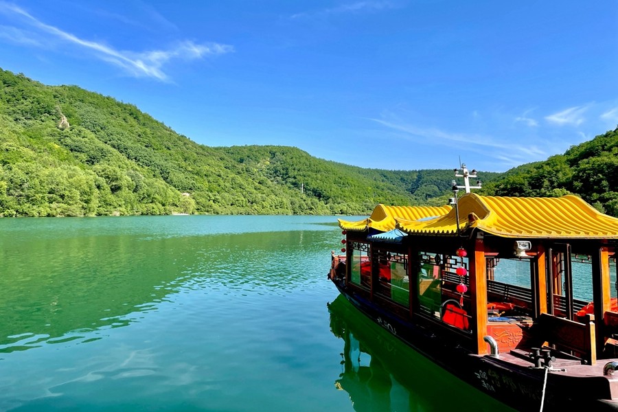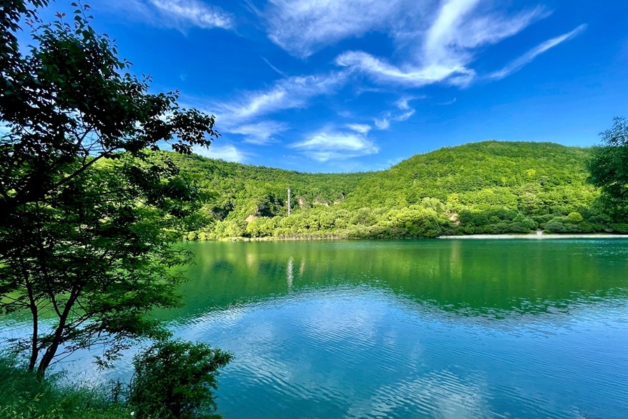 侍郎湖,位于陕西省彬州市底店乡牛北村,是一个自然形成的堰塞湖,也是陕西省境内最大的自然淡水湖,为国家4A级旅游景区,有着“高原明珠”之美誉。景区周围青山、一泓碧水,林区郁郁葱葱,树影婆娑,犹如一幅上好的泼墨山水画,是闲暇之余垂纶避暑、休闲娱乐的胜地。(孟村矿 孙超)